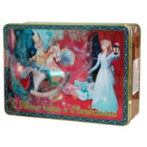 Описание: новогодний ларец Щелкунчик. Состав: чай Халифат черный байховый индийский 100 г, Ирландский завтрак, черный ароматизирован маслом бергамота 100 г, земляничный трюфель зеленый ароматиззирован маслом лимона 100 г., Клубника в шоколаде черный ароматизирован маслом клубники и какао 200 г. Упакован в жестяную подарочную банку с замочком.