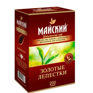 Тест:: Майский чай «Золотые лепестки» отличает крепость и мягкая терпкость вкуса. Его высокое качество, превосходный вкус и аромат неоднократно были отмечены на российских и международных выставках.Качество упаковки - econom classКачество чая - business classНаличие ГМО - нет данных